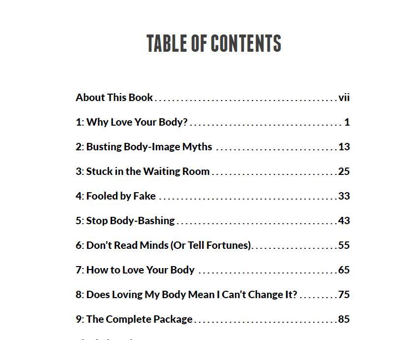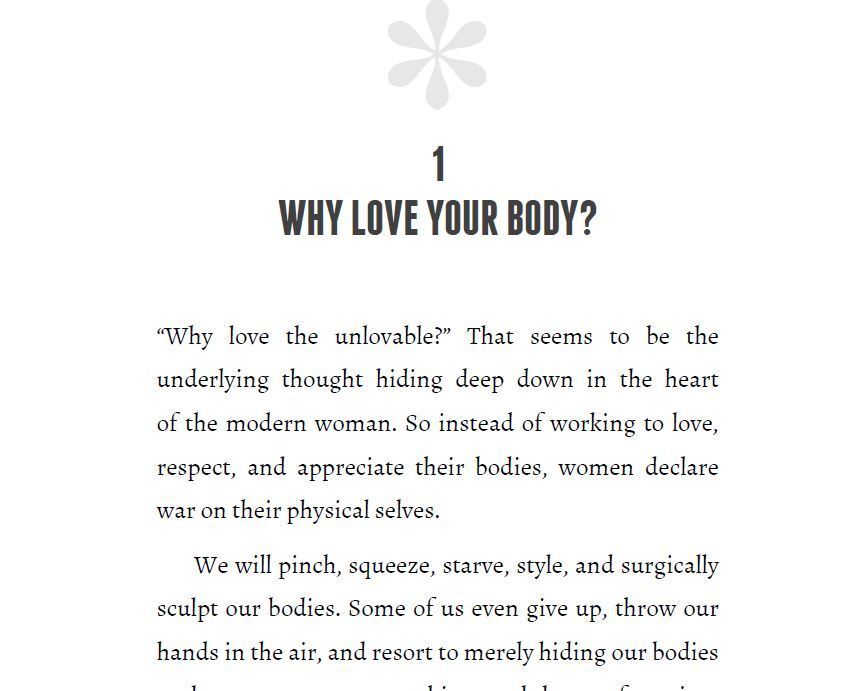 Love Your Body tackles the negative thought patterns that cause you to feel anxious, discouraged and downright miserable about your appearance. It's a simple, common-sense guide to learning how the way you think affects how you feel about your body (and your life!).